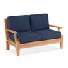 Our Grand Banks Collection has a traditional look composed of solid teak and features deep seating that adds both charm and convenience to your space. The loveseat has a fine, sanded finish for less long-term maintenance over the years. The back seating frame consists of vertical slats and the arms feature curved detailing. The teak used is plantation grown, European grade teak furniture from FSC-certified upcycled teak wood, gathered from old-growth, FSC-certified forests, across the Indonesian archipelago. The teak wood undergoes a six-week kiln drying process of taking moisture out of the wood. This is important because the moisture in the teak wood is what causes the finished product to shrink or expand with changes in temperature and humidity. Making it one of the most durable materials we carry, teak is the only material with a natural resistance to water, insects, mold, and mildew. Each piece is a combination of machine-made for precision and handmade with traditional Mortise and Tenon construction for smooth and tight joinery to showcase the elements from local artisans.
