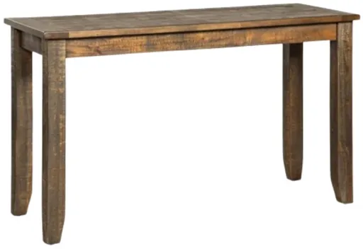 The Sunny Designs homestead tobacco leaf sofa table combines rustic charm with functional design, featuring a warm tobacco leaf finish and sturdy construction. Its spacious surface and lower shelf provide versatile storage or display space, making it a timeless addition to any living area.