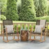 The Hampton collection offers a blend of materials in a contemporary look that adds warmth and substance to your space. The rocking chair features a neutral shade of resin wicker strands over a solid teak frame. The seating is fully assembled and cross-braced to provide extra support. The weave pattern allows air to flow through, keeping you cool while you lounge outside. This chair is a combination of machine-made for precision and handmade with traditional Mortise and Tenon construction for smooth and tight joinery. Pair with cushions, sold separately, to complete your chair.