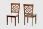 The Fatima Grey Fabric Upholstered and Walnut Brown Finished Wood Dining Chair Set of 2 brings a touch of modern elegance to your dining space. These chairs are designed with a sophisticated grey fabric upholstery and a rich walnut brown finish, making them a perfect addition to any contemporary home. Constructed from durable oak and rubberwood, these chairs are both stylish and sturdy.