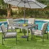 $3,199.95Chair Kingsoho slate grey aluminum with cushions 5 piece swivel dining set 46 in sq slat top tableSaveAdd to List