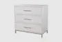Introducing the Wisteria White Wood 3-Drawer Dresser, a modern piece perfect for any bachelor's bedroom. Designed with sleek lines and a soft white finish, this dresser combines style and functionality. Its plantation mahogany solids and okoume veneer offer durability and a touch of sophistication.