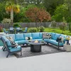 Montecito Charcoal Aluminum with Cushions 8 Piece UShaped Sectional 48 in D Sintered Fire Pit Table