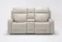 Matrix Cream Leather Power Zero Gravity Reclining Immersive Audio Console Loveseat With Power Headrest Power Lumbar Heat & Massage Lights Cupholders Storage & USB