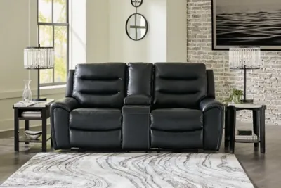 With its decidedly contemporary styling, the Warlin power reclining loveseat with console has a sleek sensibility that seamlessly elevates your living room aesthetic. Explore endless possibilities for comfort with one-touch power control, zero-gravity reclining and adjustable headrests. A triple-tier back and chic black upholstery round out this simply stunning piece.