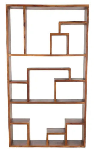 Create a focal piece in your home with this unique mid century modern bookcase! The natural wood grain details are accented by the geometric pattern of the three shelves. Stack, organize, and create displays of your favorite books, home decor items, and more. We think this would stand out in your living room or home office!