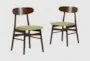 Enhance your dining experience with the Kenji Wood Dining Chair set. Featuring a stylish mid-century modern design, these chairs combine function and comfort with their armless structure and green fabric seats. The walnut finish and tapered legs add a touch of sophistication to your dining room or kitchen.