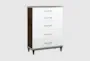 Enhance your bedroom with the Bristol Brown White Wood 5-Drawer Chest. Combining a classic design with a 2-tone finish in white and cherry, it features gold trim for an added touch of sophistication. Constructed with cherry veneer and solid poplar, this chest offers both durability and style.