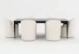 Enhance your dining experience with the Austen Black 72-90" Extendable Dining Table and Mira Barrel Upholstered Armless Side Chair Set for 6. This traditional black dining table, made from oak veneer and solid rubberwood, provides both durability and style. The set includes an extendable rectangular table with tapered legs and six comfortable armless side chairs finished in soft fabric.