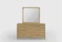The Mika 6 Drawer Dresser/Mirror brings Scandinavian simplicity to the bedroom with six roomy drawers and an included mirror for everyday grooming. Its clean lines and warm oak veneer surfaces complement a variety of decor while the solid rubberwood components add durable support where it matters. Use the generous drawer space to keep clothing and linens neatly organized and ready to grab each morning.