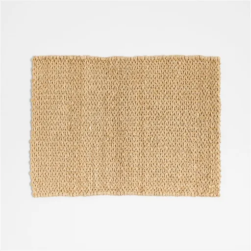 Lanai's intricate weave and pale neutral color represent an earthy yet sophisticated take on the fiber placemat. The abaca mat, a Crate and Barrel exclusive, sets an organic modern table when paired with our wood serving pieces. Or go tropical by adding our festive Cove rattan barware and colorful Nico palm dinnerware.