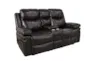 The Kellen Brown Faux Leather Manual Reclining Console Loveseat offers a perfect blend of comfort and style for your living space. Upholstered in rich brown faux leather, this casual loveseat features pocket coil seating and a hardwood plywood frame for durability. The adjustable headrest and tight back design ensure maximum relaxation.