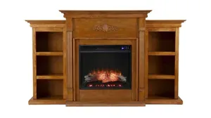 Turn up the heat on style with the Bruton Fireplace. Classic woodwork flourishes across the mantel and pilasters, lining up a traditional fireplace look. Optional bookcases shelve your reading lists, decor, and family photos, while the mantelhouses floral arrangements and your memento collection. Glowing faux fire logs add ambiance with flickering LED flames and lifelike embers, with or without heat. This smart fireplace warms your hearth, from the living room to the home office.