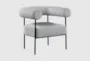 The Dex Boucle Fabric Accent Chair brings modern elegance to any living space. Its rich boucle upholstered texture creates a salt and pepper effect against the sleek matte black metal frame. This stylish accent chair is perfect for contemporary interiors.