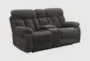 The Bravo Charcoal Polyester Manual Reclining Console Loveseat brings casual comfort and functionality to your living room. Upholstered in 100% polyester fabric, this loveseat features a cozy charcoal color that fits seamlessly into any neutral decor scheme. The design includes an adjustable headrest, cupholders, and a convenient console, making it perfect for relaxing or entertaining.