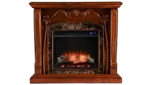 A classic Victorian design and faux marble combine to create this traditional Craig Fireplace. This fireplace features traditional pilaster wood corbels, an intricate center medallion, and luxurious faux marble. Realistic LED flamesand faux fire logs add ambiance, with or without heat. With modern conveniences and a traditional silhouette, this electric fireplace adds romantic ambiance when placed in your living room, dining room, or open concept living space.