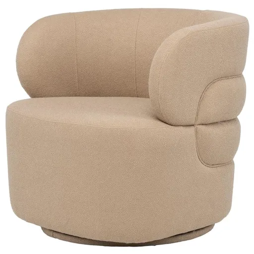 Looking for comfort? You've found it with the Julio Beige Accent Chair. This stylish barrel back style chair features a lovely, soft beige color, round base, wide seating, and attractive textured fabric. With a 360-degree swivel and modern appeal, this occasional chair is just what the doctor ordered.