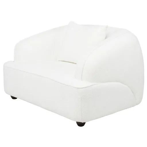 Resting on the Cleo Chair will make you feel like you're taking a relaxing break on a cloud. Made with microsuede fabric, this gorgeous white occasional chair features deep, wide seating and a feather/fiber blend filling to keep you comfortable for hours. Its piping trim accent highlights its modern style, making it perfect for any sitting area.
