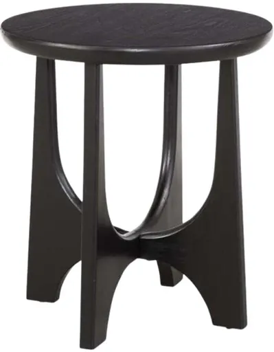 The Dunnigan End Table features modern styling with an organic architectural inspired design. The flat-cut oak wood is finished in a black matte stain. The base design features curving on the inside and straight on the outside for unique look. Also included are adjustable floor levelers for an even balance.