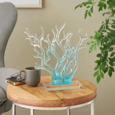 This coral home decor statue is perfect for adding a touch of coastal charm to living rooms, bedrooms, or offices. Designed with felt or rubber stoppers at the base that prevent scratching furniture and table tops, as well as sliding around. This item ships in 1 carton. Please note that this item is for decorative use only. Glass sculpture makes a great gift for any occasion. Suitable for indoor use only. This item ships fully assembled in one piece. This is a single blue colored statue. Nautical style.