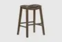 Introducing the Kinsale Brown Wood Backless 30" Barstool with Nailheads, perfect for adding a rustic touch to your dining room or kitchen. This barstool features a curved seat upholstered in faux leather, complemented by nailhead accents for a timeless look. The solid rubberwood construction ensures durability and stability.