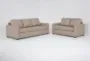 Enhance your living room with the Mathers Mocha Beige Brown Vegan Faux Leather 2 Piece Sofa & Loveseat Set. This modern set features a sleek design that is perfect for any contemporary home. The loose reversible back cushions add versatility and comfort to your seating experience.