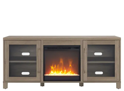 Combine functionality and classic contemporary design with the Ursula TV Stand, featuring an inset electric fireplace. Its rich wood tone creates a warm neutral palette that will blend seamlessly into any color scheme, while its glass-doored side cabinets allow for plenty of storage. Cable management cut-outs and adjustable inner shelves help keep your media storage and consoles organized. Stay warm and cozy while you take in the big game, a movie marathon, or that season finale everyone's been talking about.