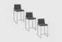 Enhance your modern living space with the Ian Charcoal 26" Fabric + Black Metal Frame High Back Counter Height Stool Set Of 3. These stylish stools feature a fixed counter height, making them perfect for your kitchen or bar area. The charcoal fabric upholstery and padded seat and backrest provide both comfort and contemporary flair.