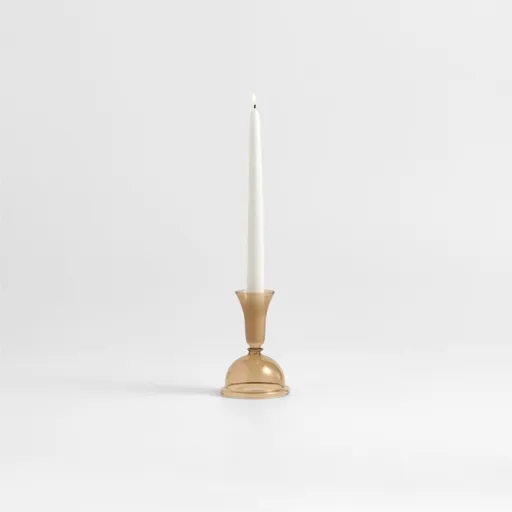 Milano reimagines vintage candlesticks, updating the ornate silhouettes with streamlined curves in amber glass to stunning effect. Hand-blown by skilled craftspeople, this small, intricately curved candle holder culminates in an elongated cup that supports a taper or doubles as a bud vase. The modern grey-brown tint glows warmly in candlelight. Display the subtly playful piece solo for a sculptural look, or layer other exclusive Milano glass taper holders in various heights and hues for a more eclectic, extravagant effect.