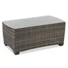 The Tribeca Collection contains concealed cushion seating composed of browns and greys for a versatile look that blends with every style. The 48 x 26 in. coffee table is handwoven with 9mm half round PE synthetic strands of resin wicker, treated with UV inhibitors, over a fully welded, handmade aluminum frame with a multi-step powder-coated finish and supported inner walls. Included is a tempered 5mm beveled glass top for a smooth surface to set your snacks and drinks upon.