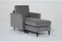 Introducing the Bradley Charcoal Grey Fabric Modern Chaise Lounge, a perfect addition to your living room. This stylish chaise lounge features a sleek modern design that complements any decor. Upholstered in 100% polyester fabric, the lounge offers comfort and durability.
