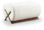 Akira Cream Fabric Ottoman invites you to settle into cloud-like comfort with a plush foam cushion wrapped in cream polyester fabric. The rectangular silhouette sits on a warm rubberwood base with X-shaped end supports for steady, low-profile stability. Designed for flexible use in the living room, it works as extra seating, a footrest, or a surface for a tray to anchor your seating area.