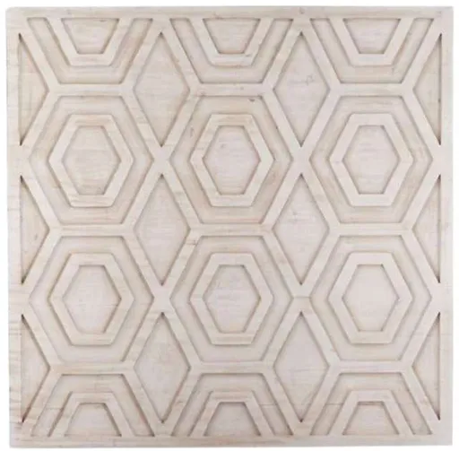 The Geometric Wall Art features white washed wood with geometric cut out designs. This large scaled contemporary art piece is designed to be hung on the wall, and will make a statement in any room in the house.