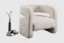Experience ultimate comfort with the Emmaline White Teddy Sherpa Accent Chair. This casual, curved chair features a tight back and supportive arms, making it a cozy addition to any living room. Its soft white teddy sherpa fabric adds a touch of warmth and relaxation to your space.