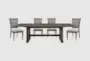 The Sylvia Brown Wood 84-102" Extendable Double Pedestal Dining Set for 4 brings timeless style to your dining room or kitchen. Crafted from driftwood brown wood, this traditional set includes a rectangular dining table and four chairs, perfect for family meals or dinner parties. The extendable tabletop allows you to easily accommodate more guests, making it a versatile addition to your home.