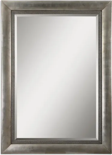This stately floor mirror from RC Willey features a wood frame finished in antiqued silver leaf with black undertones and a gray glaze. This piece is sure to make a statement in your home.