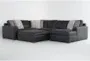Big Sur Blue Leather 141" 4 Piece U-Shaped Modular Sectional with Armless Loveseat Right Arm Facing Chaise & Cocktail Ottoman | Furnzy.com - Shop local furniture stores in one place