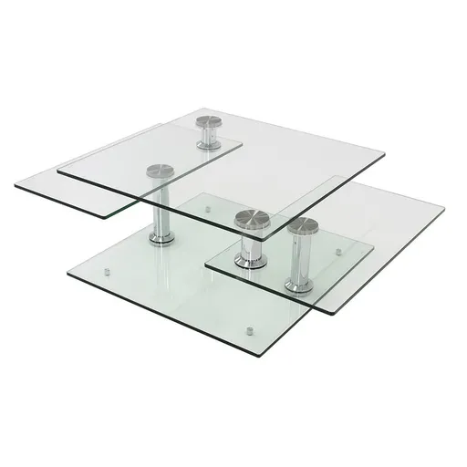 The Square Clear Silver Motion Coffee Table is a modern piece for your living room. Shapes of clear glass with flat polished edges attached together with stainless steel pucks swivel around for a table with many levels. Display your snacks, books and many other things differently for a piece ready to make a statement.