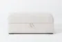 Introducing the Araceli II Sand Beige Fabric Rectangle Storage Ottoman, the perfect blend of modern style and functionality for your living room or bedroom. Upholstered in soft sand beige fabric, this versatile piece offers both extra seating and hidden storage to keep your space tidy. Whether used as a coffee table or an extra seat, this ottoman is sure to enhance your home's décor.