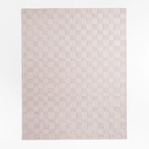 3. Imperfect Checkerboard Lilac Rose Wool Kids Area Rug 8'x10'