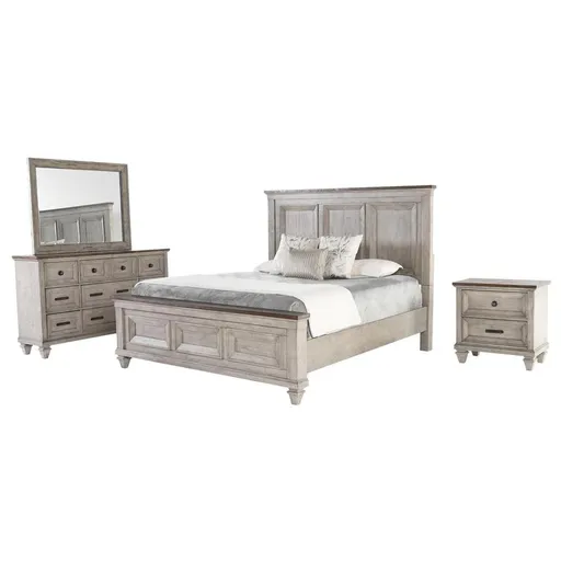 With an elegant look and coastal style, the Marisol 4-Piece Queen Bedroom Set has it all. Made with acacia solids and veneers, this set features a powered base compatible bed, a gorgeous nightstand with built-in USB-A port(s), a timelessly gorgeous dresser with nine storage drawers, and a breathtaking mirror.