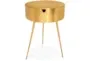 The Xylen Gold Metal 1-Drawer Bedside Table Nightstand is a perfect addition to any modern bedroom. Featuring a round shape and a sleek gold finish, this nightstand adds a touch of sophistication and functionality to your sleeping space. Its portable design and storage drawer make it a practical and stylish choice for keeping your essentials close at hand.