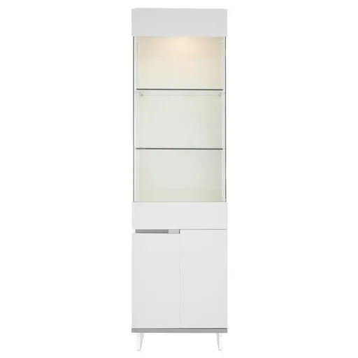 If your TV stand needs extra storage, or if you’re looking for a combination of display and storage in your living room, then the Siena White Left Pier Unit is for you. This right pier unit has 2 adjustable wood shelves behind glass doors and lights overhead that are operated via an on/off button. The wooden door at the bottom has extra shelves for movies, photo albums, etc. Self-closing European-style hinges keep doors out of the way.