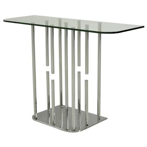 Add a stunning contemporary design to your living room or entryway because of the Cascada Console Table. A uniquely designed stainless steel base with a floating effect is placed under a clear tempered glass top, so this console table will make an impression in your home instantly. Display a few of your accessories on the tabletop.