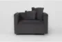 The Tao Dark Grey Velvet 45" Swivel Armchair is a modern addition to any living room. Upholstered in 100% polyester velvet, this armchair offers a soft, plush seat perfect for relaxing. With its swivel feature, you can easily adjust your seating position for optimal comfort.