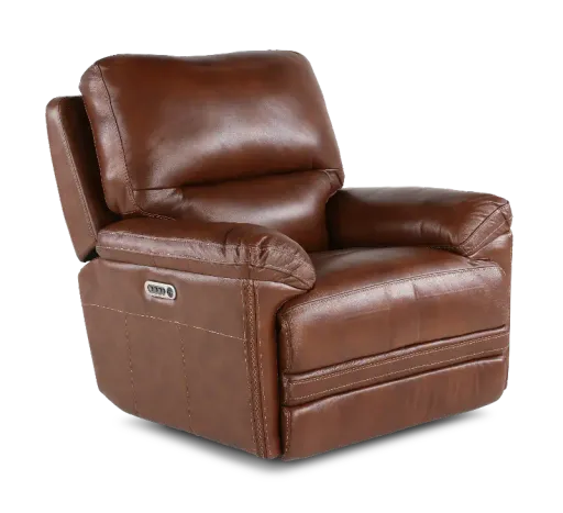 Looking for sophisticated design and comfort with unrivaled value? Say hello to the David Power Glider Recliner! Undeniably plush, feel yourself sink into the wide seat cushion, divided back, and lofty pillow-padded arms. The power recline, power headrest, and power lumbar allow you to adjust the settings at the touch of a button to find the ideal position for relaxation. Upholstered in a buttery-soft, protected top-grain leather, this recliner is designed for everyday enjoyment and active lifestyles.