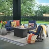 The Portofino Collection features a bold and modern look that will provide you with the perfect backyard patio experience. It is built for long-lasting durability. Each piece in this 4 piece swivel loveseat group has an extruded aluminum frame with weather-resistant properties such as a powder-coated and hand-applied antique finish with UV inhibitors. The loveseat and swivel club chairs feature a handwoven synthetic resin wicker seat and back with deluxe Sunbrella® solution-dyed acrylic cushions to create a relaxed and comfortable experience.