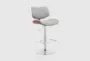 The Michelle Adjustable Grey Faux Leather + Chrome Finish 24-33" Barstool is a stylish addition to any dining room or kitchen. Its modern design features a sleek, armless silhouette and a curved shape for added comfort. The grey faux leather upholstery and chrome finish create a sophisticated look that complements various decor styles.