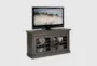 The Sundance Grey 63" TV Console is a casual style piece made of wood and glass, featuring storage with doors, adjustable shelves, cord management, and tall height. Its smokey grey color and use of poplar solids and birch veneers make it a stylish addition to any living room.