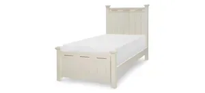 Sail away to sleep in the Lake House St Post Bed in distressed pebble white. Featuring vertical panels bordered with a nautical-styled rope accent, this bed adds a maritime pop to your home. Pair with the Lake House St Underbed Storage Unit to store your sheets and blankets. Also works with the Lake House St Trundle/Storage Drawer for storage or additional sleeping accommodations. The Low Post Bed embodies the natural feel of this strong, unique collection. Crafted from poplar solids with rustic birch veneer.